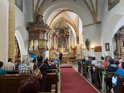 Bei strahlendem Sonnenschein machten sich 45 Wallfahrer am Pfingstmontag der Pfarren Hainfeld und Rohrbach auf dem Weg (zu Fuß von St. Christophen oder mit dem Bus) nach Maria Anzbach. In Maria Anzbach machte uns Hr. Erzdechant Willi Schuh eine kurze Kirchenführung. Um 11 Uhr feierten wir den Gottesdienst in der Pfarrkirche Maria Anzbach. Nach dem Mittagessen ging es nach Traismauer. Zuerst besuchten wir die Kirche , danach bekamen wir eine ausführliche Stadtführung. Zum Abschluss durfte der Heurigenbesuch unseren Pfarrausflug abrunden.