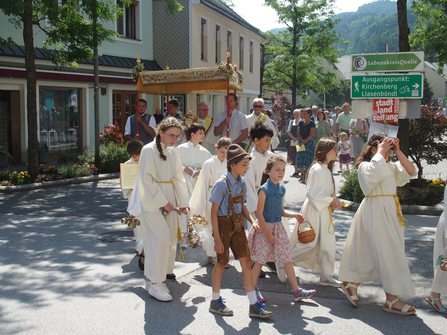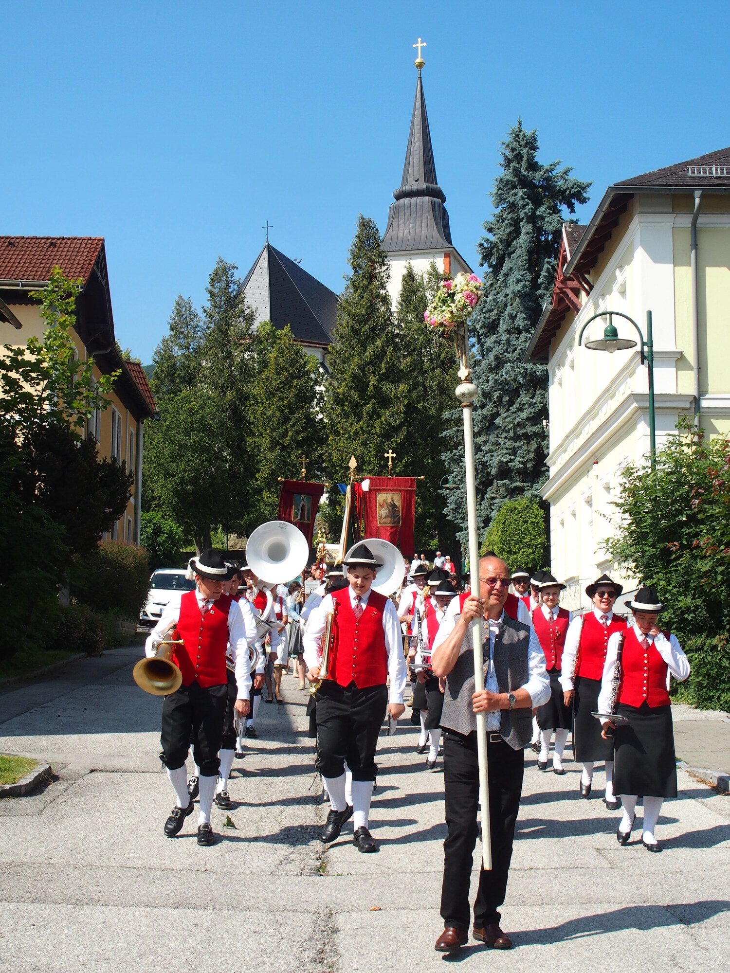 Musikalisch begleitet wurde die Fronleichnamsprozession von der Stadtkapelle Hainfeld. Allen, die zu einer würdigen Feier beigetragen haben, ein herzliches Vergelt´s Gott.